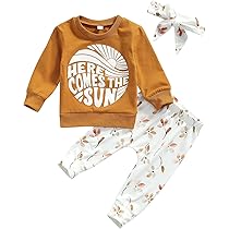 Amazon Com Baby Girl Clothes Set Fall 3 6 9 12 18 24 Months Long Sleeve Sweatshirt Floral Print Pants Headband Outfits Light Brown 0 6 Months Clothing Shoes Jewelry
