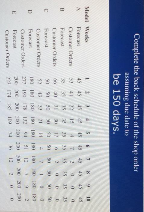 Complete The Back Schedule Of The Shop Order Assuming Chegg Com