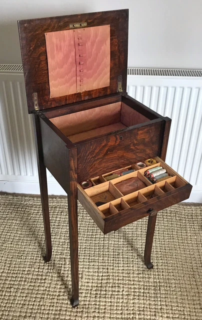 Sewing Box Table Vintage 1930s 1940s Dark Wood Antique With Round Flip Top 15 00 Picclick Uk